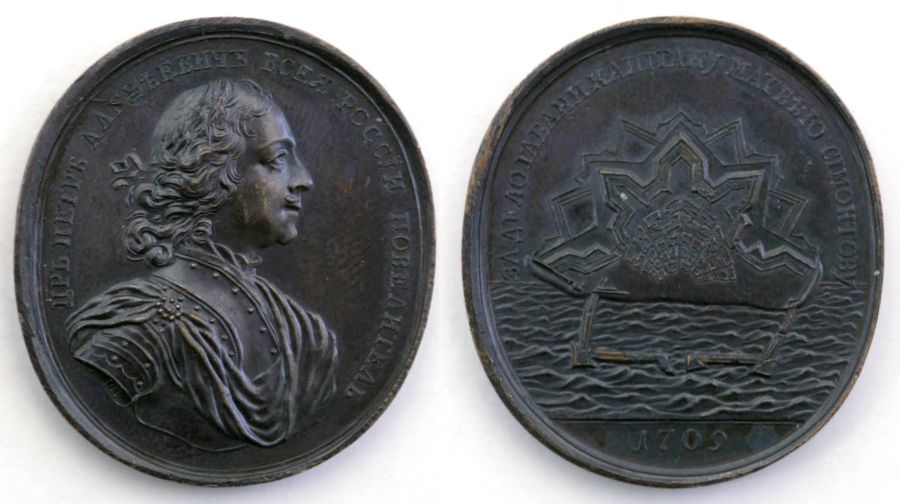 Название изображения: Медаль "Капитану Симонтову за построение гавани в Таганроге. 1709 г."