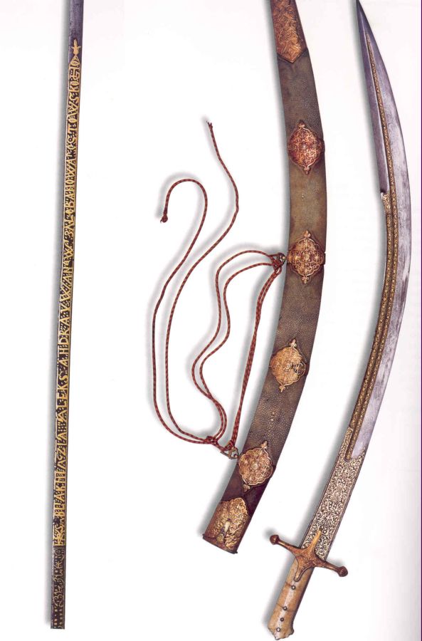 Надпись сделана кривыми латинскими буквами поверх "имитации арабской надписи".Из альбома "Императорская Рюст-Камера",инв.№ОР-143